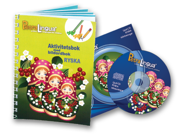 Med det kompletta PetraLingua® Ryska för barn lärandeset har dina barn nu möjligheten att njuta av vårt färgglada Ryska lärovideo på DVD, lyssna på alla låtar från kursen på en CD och öva vad de lärt sig med deras Ryska aktivitetsbok..